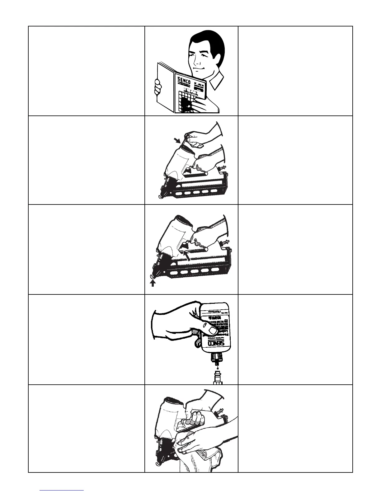 ● Squirt SENCO pneumatic oil (5 to 10