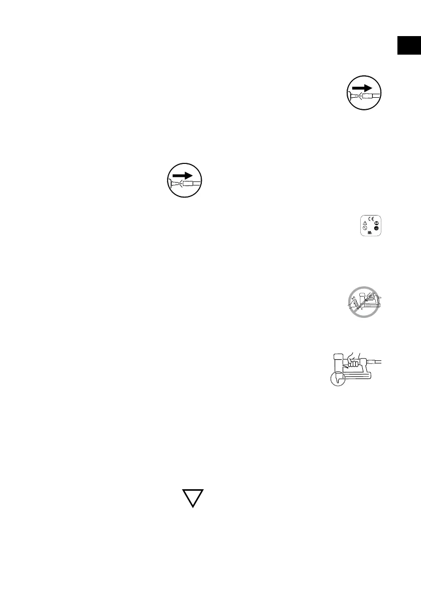Never carry or drag a pneumatic tool by its hose.