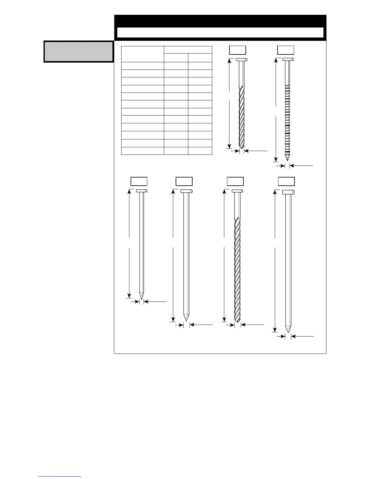 Senco SN70 - SN70 Nail Specifications; SN70 Nail Codes and Dimensions