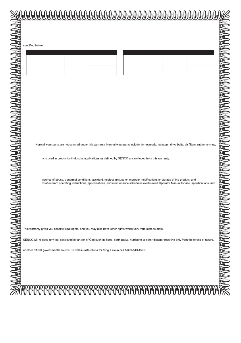 Authorized Warranty Service Centre. A list of SENCO Authorized Warranty Service Centres can be found at www.senco.com or by calling