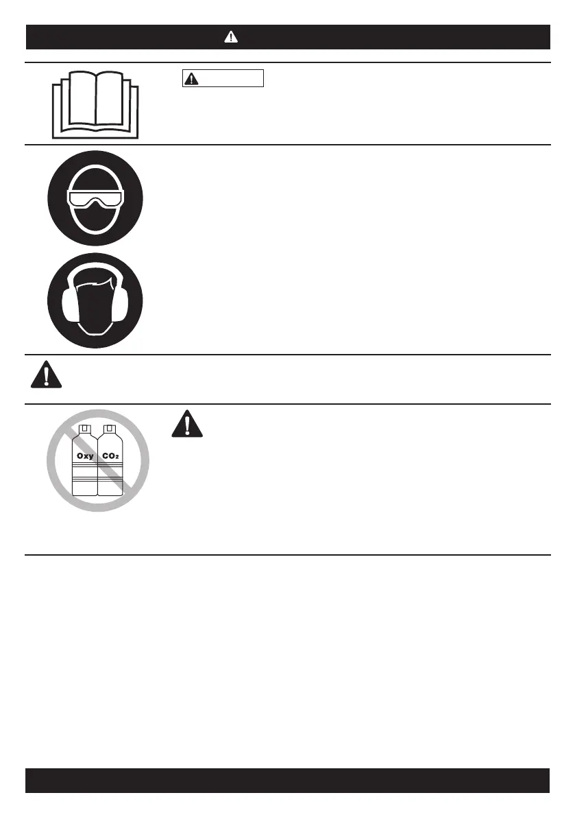 Never use oxygen, carbon dioxide or any other bottled gas as a power source for