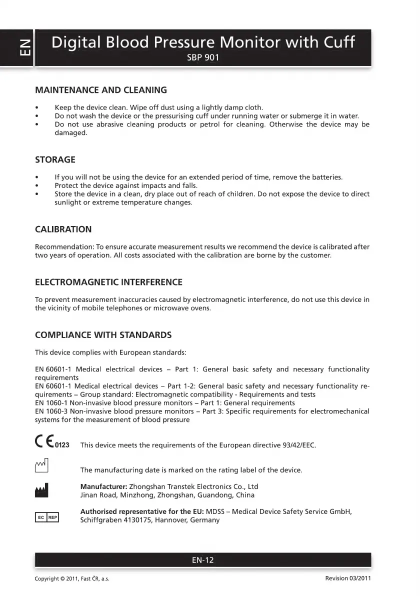 Sencor SBP 901 - Maintenance, Storage, and Calibration; Maintenance and Cleaning; Storage Recommendations; Calibration Advice