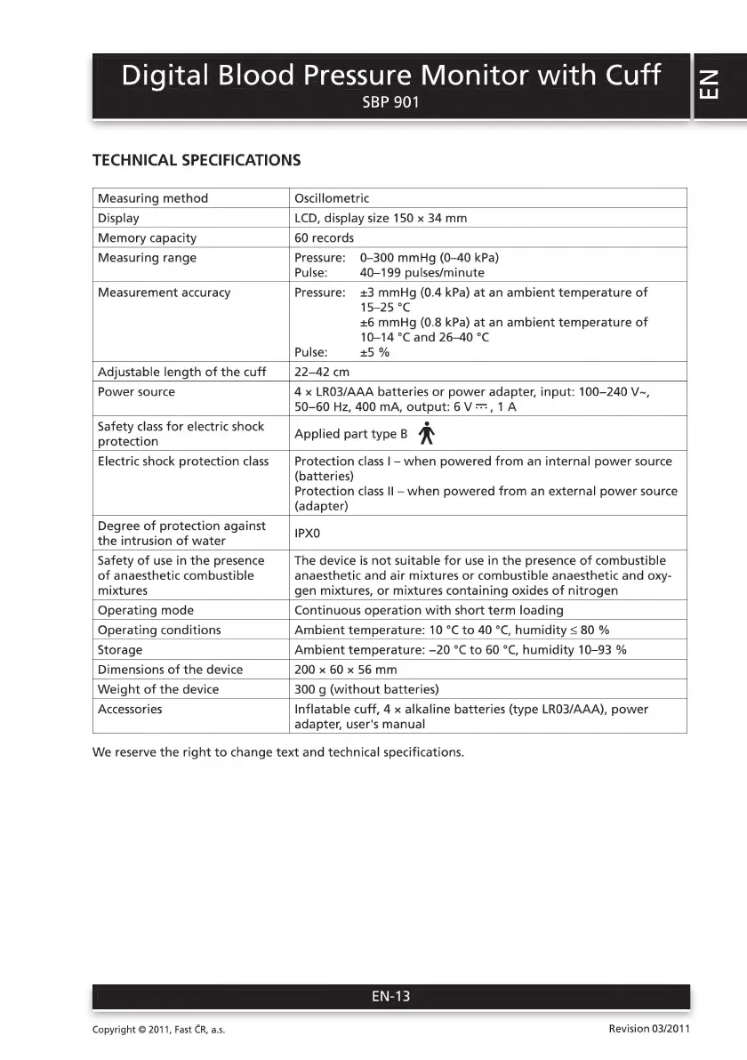 Sencor SBP 901 - Technical Specifications