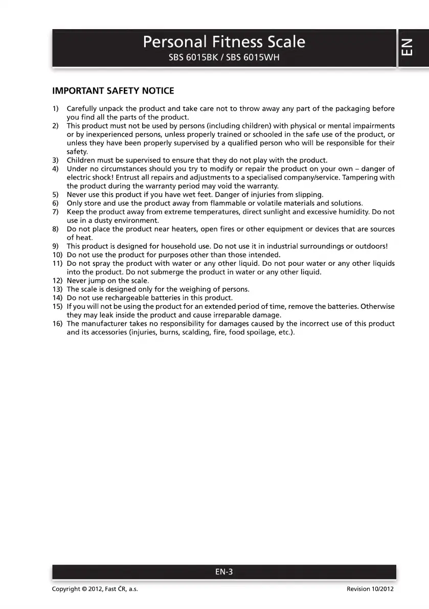 Sencor SBS 6015BK - Important Safety Notice