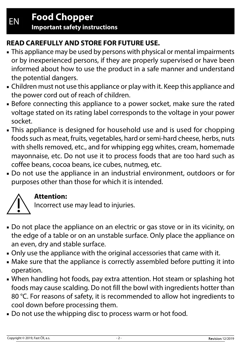 This appliance is designed for household use and is used for chopping