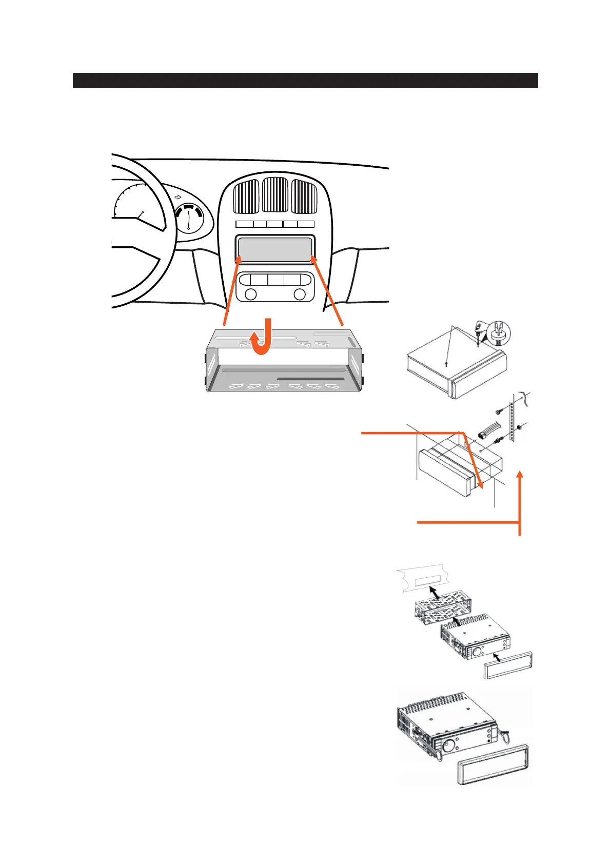 If your car is fi tted with a one (1x) DIN size opening for a car audio system, you can install the car radio according these steps.