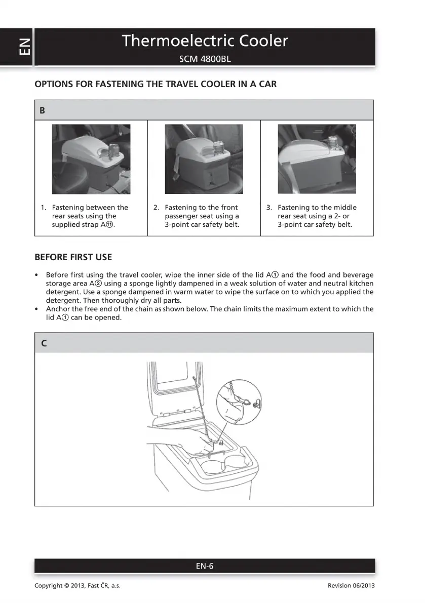 Sencor SCM 4800BL - Options for Fastening the Travel Cooler in А Саќ; BEFORE FIRST USE Аен Аы Тыд