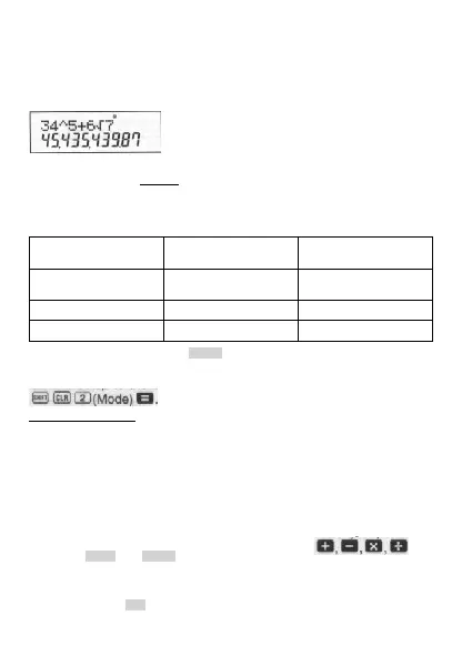 • Před použitím kalkulátoru je nutné specifikování jeho režimu - viz následující tabulka:
