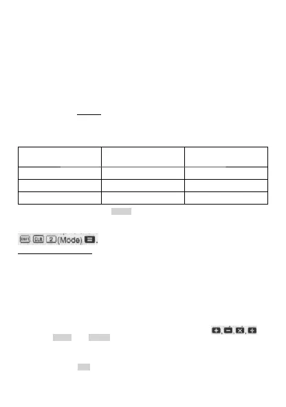 • Pred použitím kalkulátora je nutné špecifikovanie jeho režimu - viď nasledujúcu tabuľku: