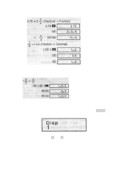 • Ha a számítás egynél nagyobb törtet eredményez, a kijelző beállításait tartalmazó „Disp”