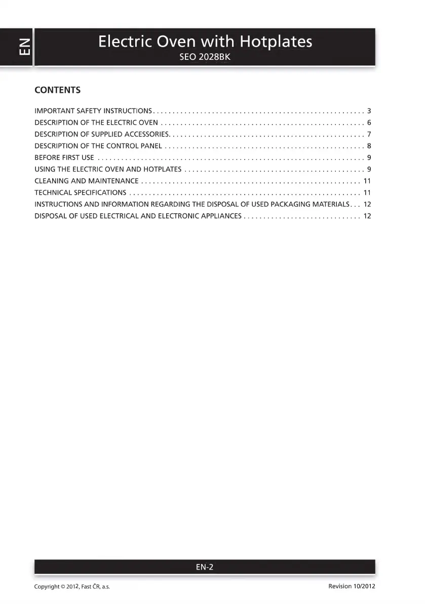 Sencor SEO 2028BK - Table of Contents