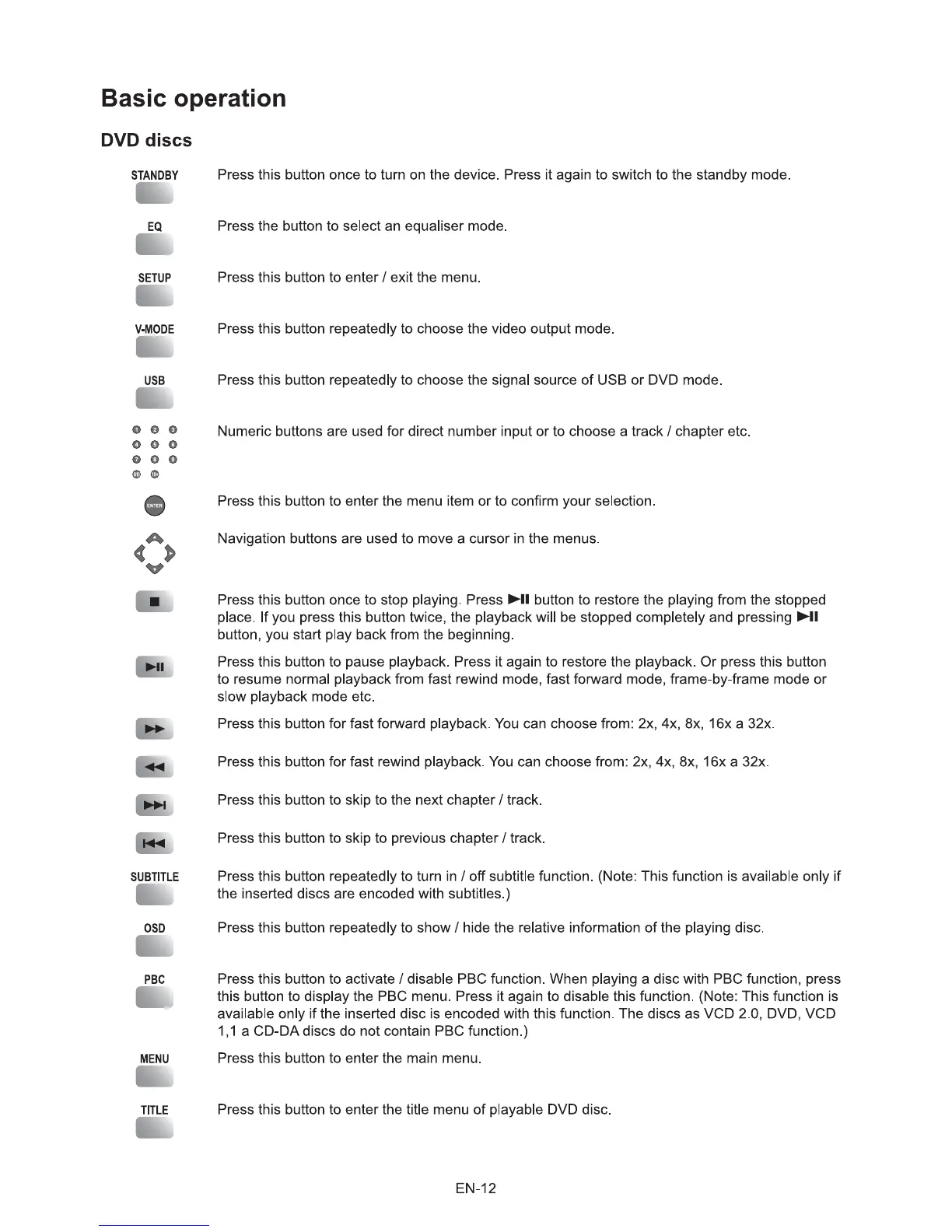 Sencor SHC XD013 - Basic DVD Playback Operations; DVD Disc Control Buttons