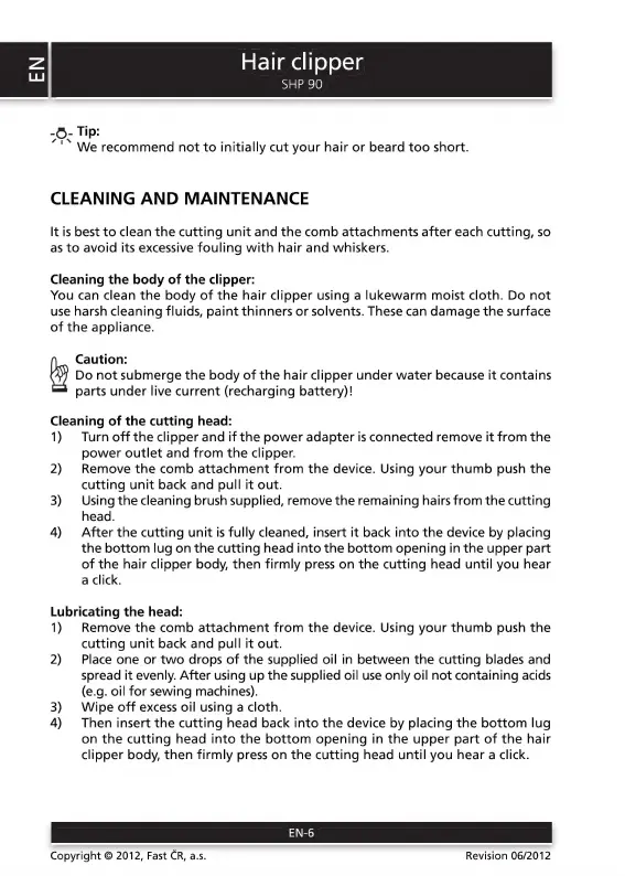 Sencor SHP 90 - Maintenance and Care; Body Cleaning; Cutting Head Cleaning and Lubrication