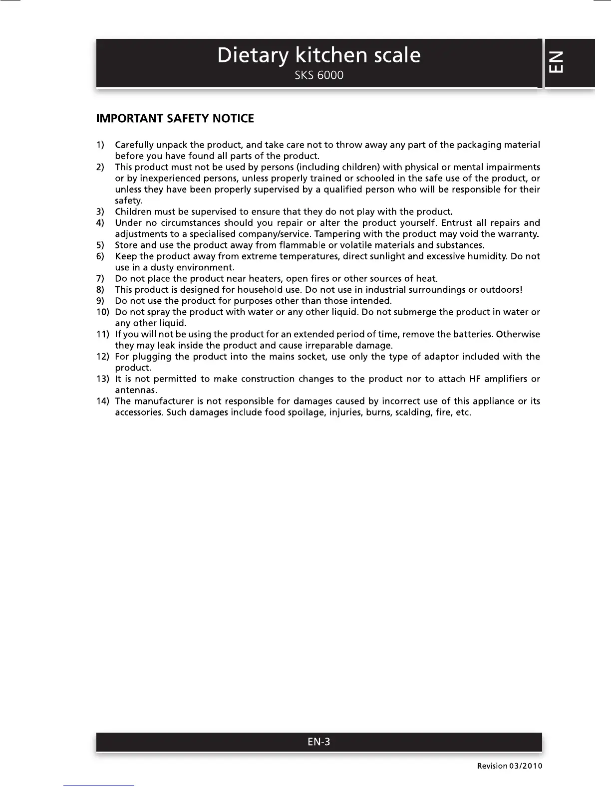Sencor SKS 6000 - IMPORTANT SAFETY NOTICE