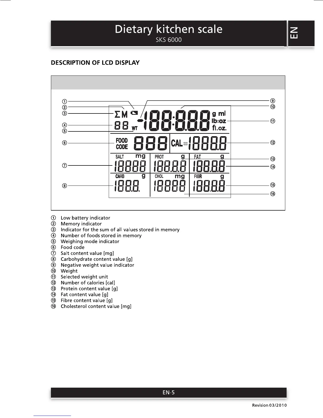 Sencor SKS 6000 - DESCRIPTION OF LCD DISPLAY