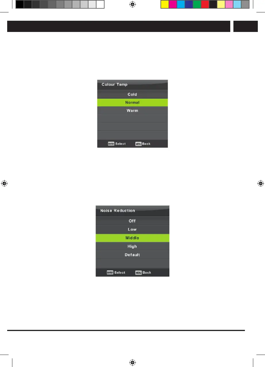 Using the buttons V/v select the item Noise Reduction and them press OK to enter the