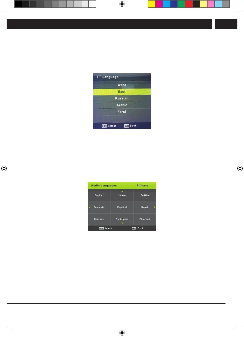 Use the buttons V/v to select the item TT Language and then press OK to enter the