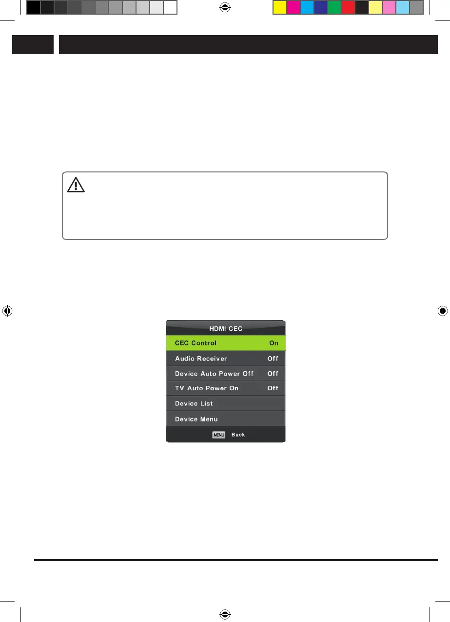 CEC Control Press b/B to switch on or off the HDMI CEC function.