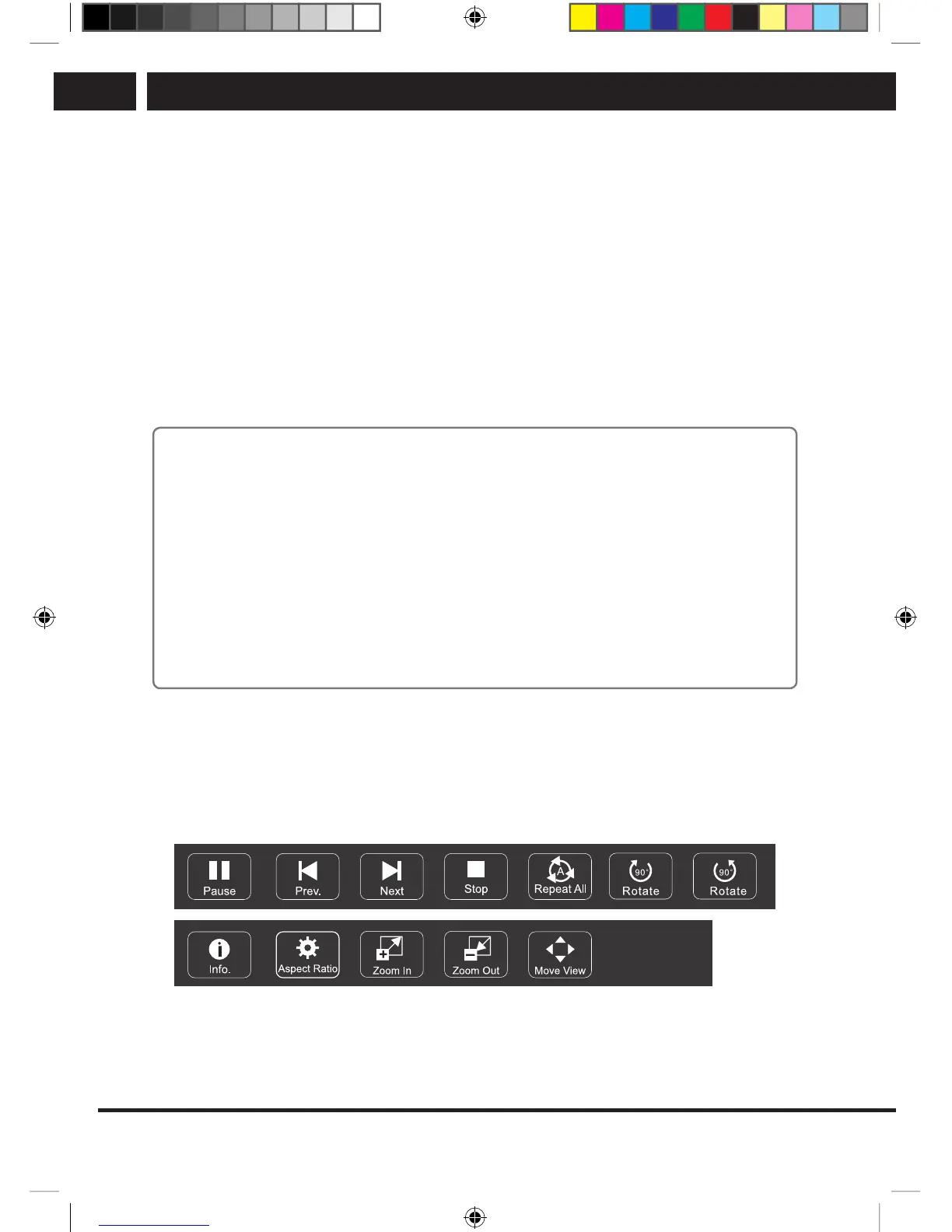 Play and pause / Stop / Previous / Next