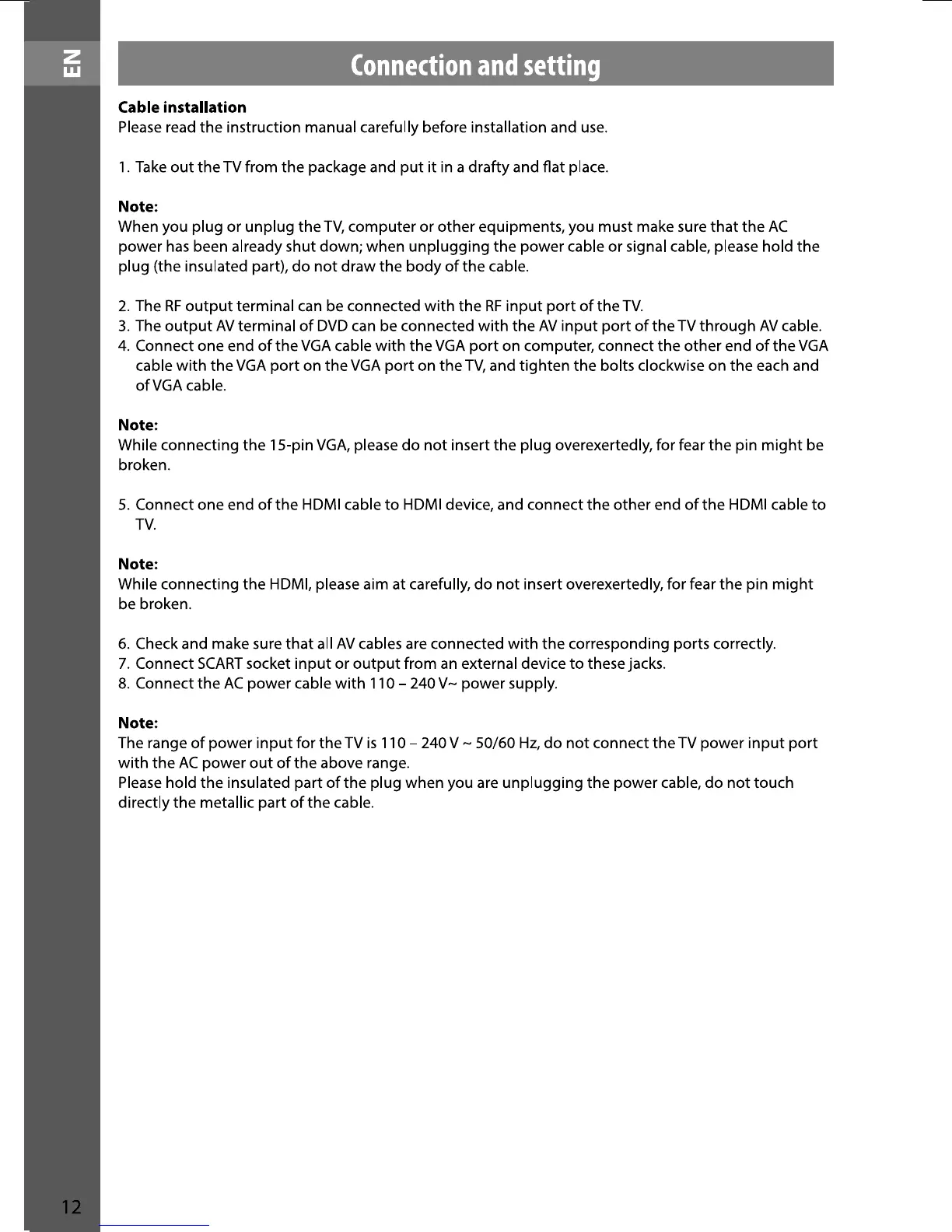 Sencor SLE 40F10M4 - Cable Installation Guide; Connecting Cables and Power Supply
