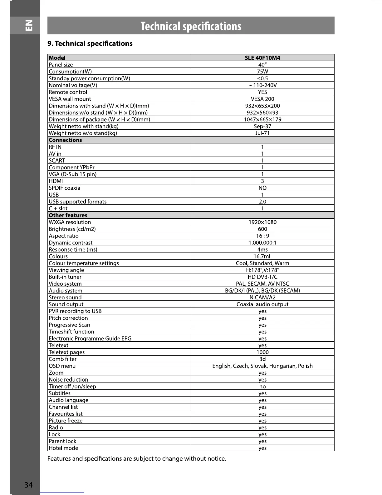 Sencor SLE 40F10M4 - Page 34