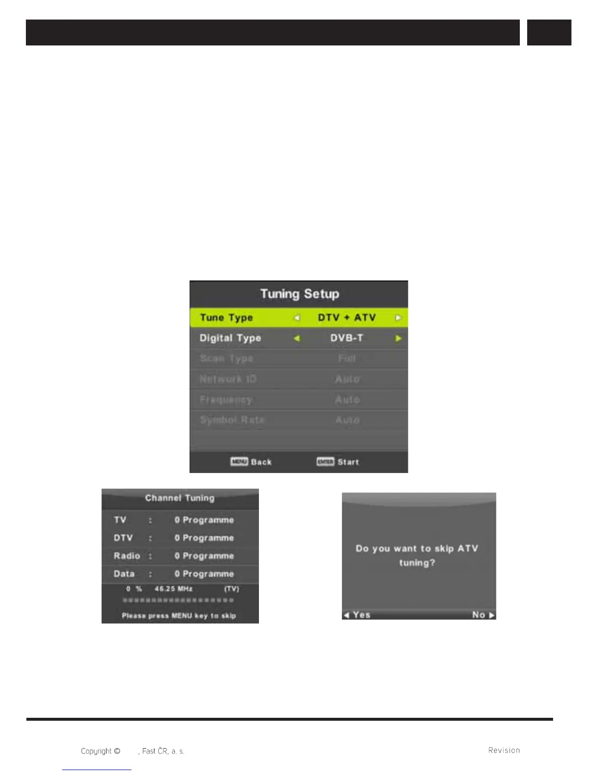 will start fi rst. If you want to skip ATV tuning, press MENU button and left arrow button.