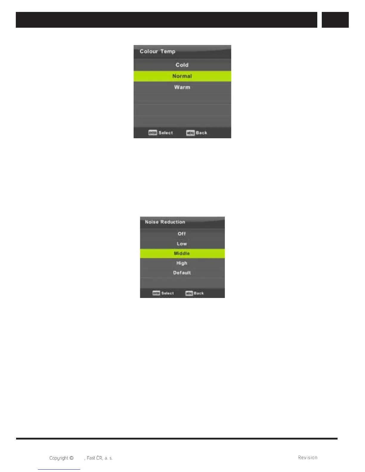 Press / button to select Noise Reduction, then press OK button to enter sub-menu.