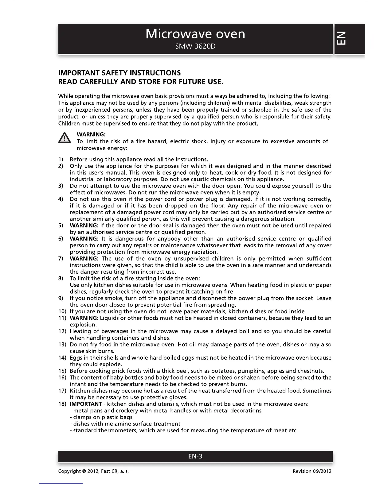 Sencor SMW 3620D - IMPORTANT SAFETY INSTRUCTIONS