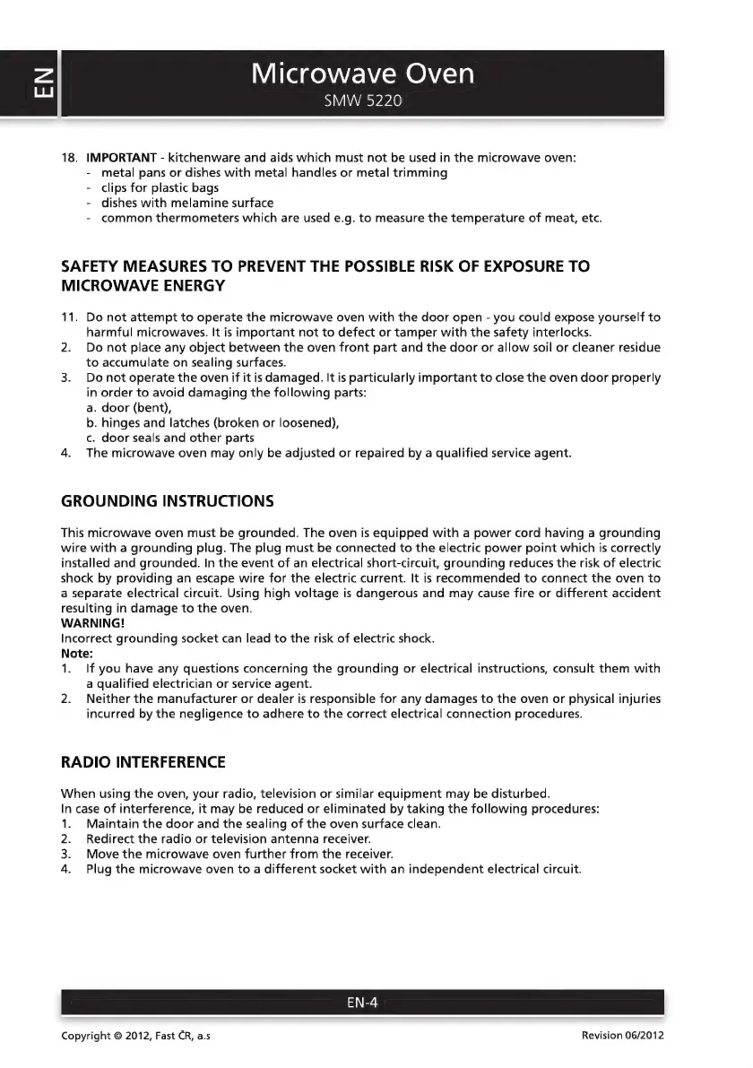Sencor SMW 5220 - Grounding and Interference; Grounding Instructions