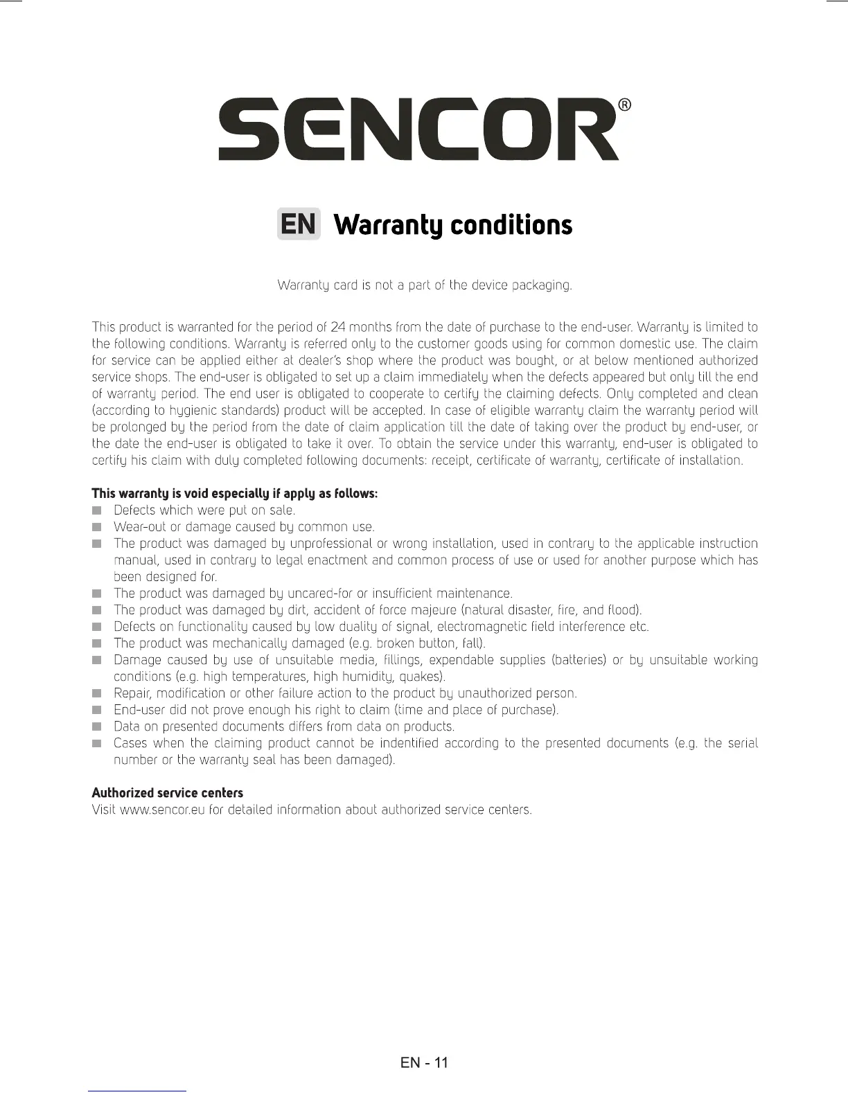 Sencor SPT 233 - Warranty Information; Warranty Terms and Conditions