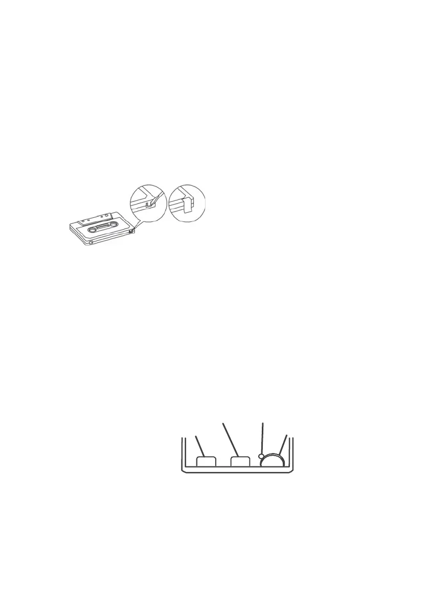 Trzymając kasetę nagraną stroną do góry i taśmą skierowaną do przodu, ząbek zabezpieczające znaj-