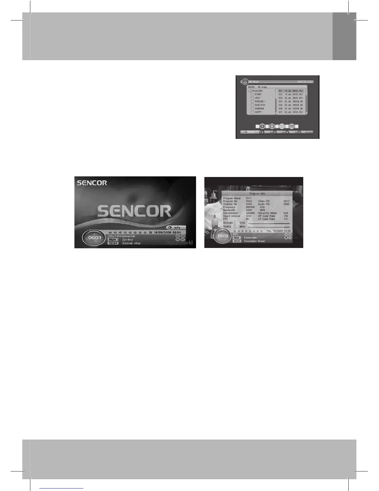 time, program name, now and next event, lock, scramble, subtitle and teletext info.