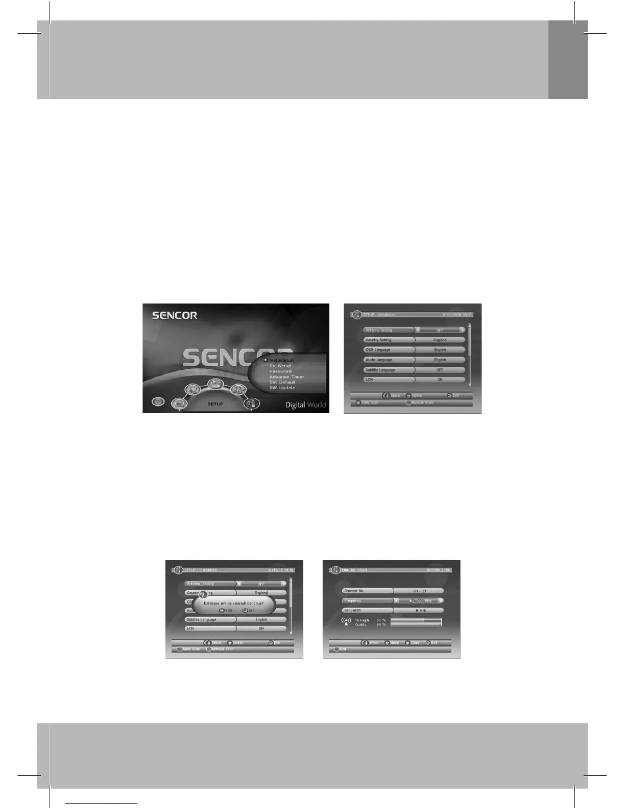 Pre vyhľadávanie programov je potrebné prehľadať možné frekvencie a pásma. Stlačte tlačidlo OK alebo