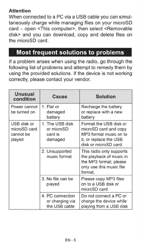 Sencor SRD 215 B - Troubleshooting Common Issues; Power and Media Playback Problems