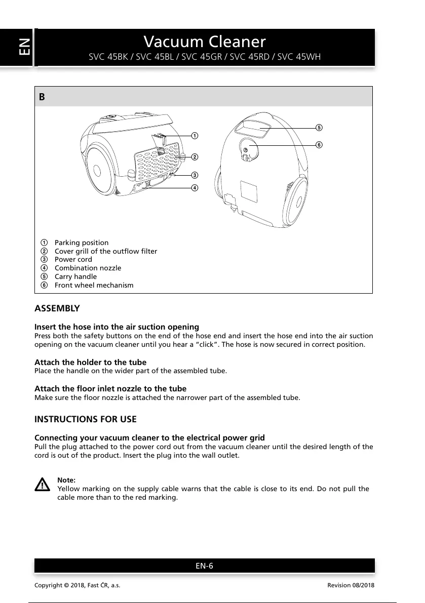 Sencor SVC 45BK-EUE3 - Vacuum Cleaner Assembly; Instructions for Use