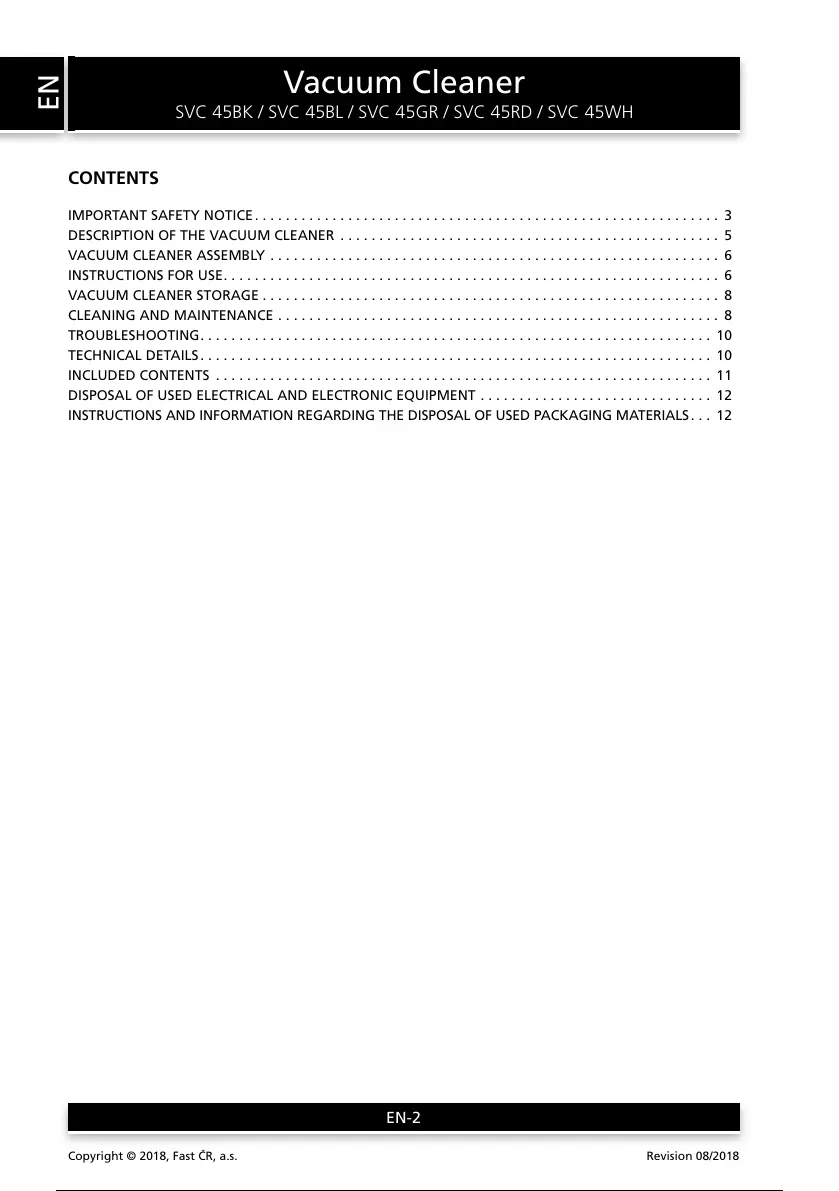 SVC 45BK / SVC 45BL / SVC 45GR / SVC 45RD / SVC 45WH