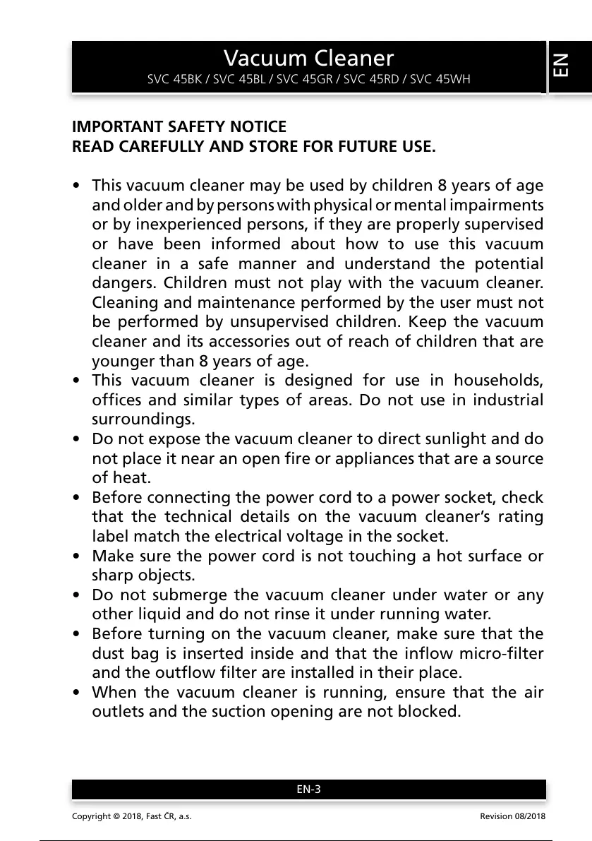 SVC 45BK / SVC 45BL / SVC 45GR / SVC 45RD / SVC 45WH