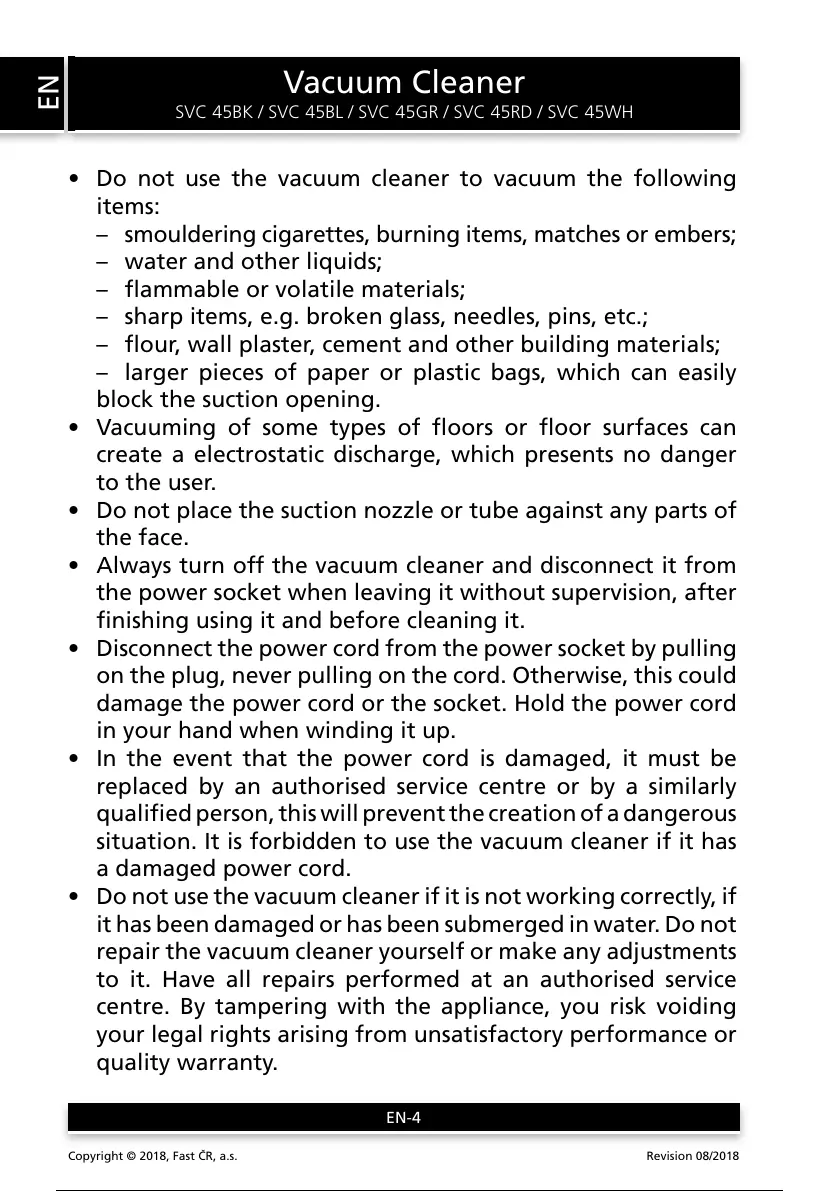 SVC 45BK / SVC 45BL / SVC 45GR / SVC 45RD / SVC 45WH
