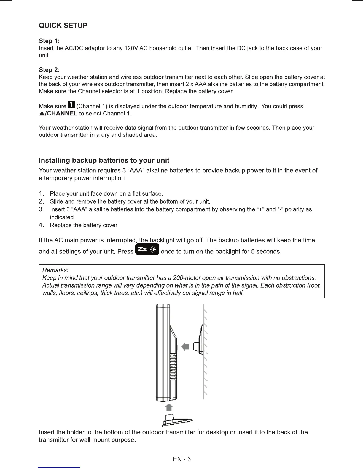 Sencor SWS 270 - QUICK SETUP; Installing backup batteries to your unit