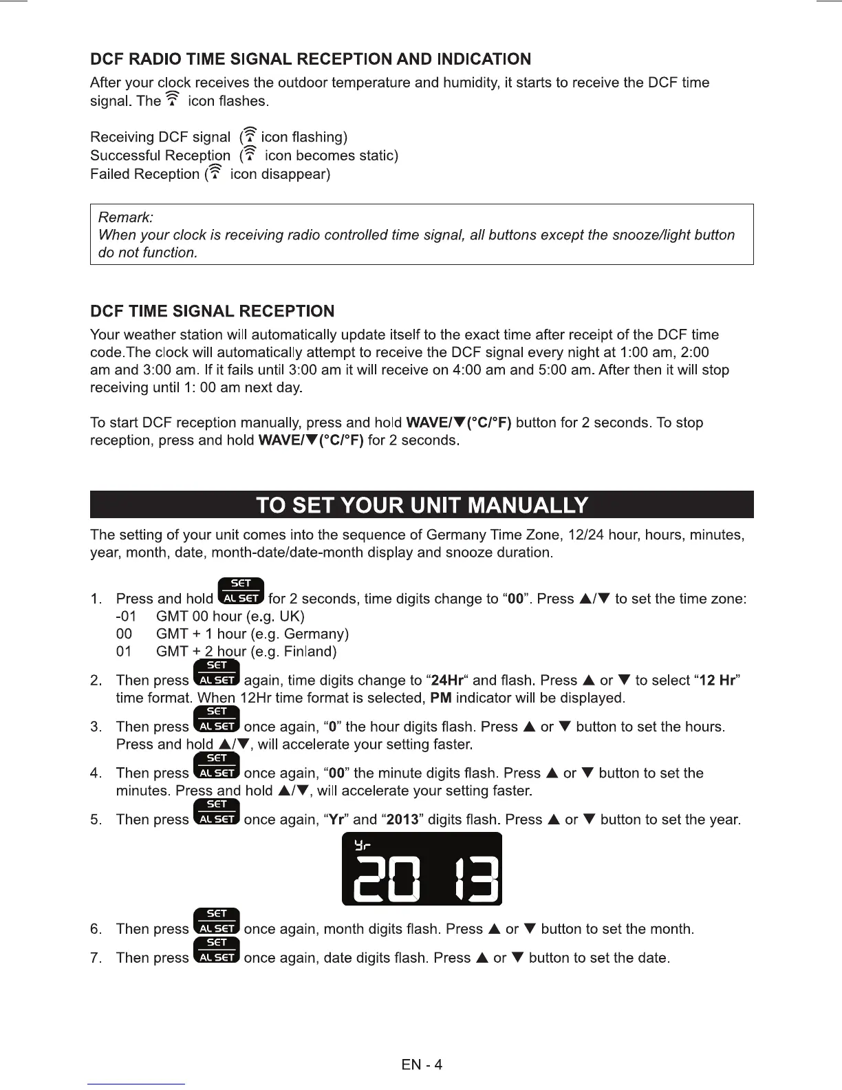 Sencor SWS 270 - DCF RADIO TIME SIGNAL RECEPTION AND INDICATION; TO SET YOUR UNIT MANUALLY