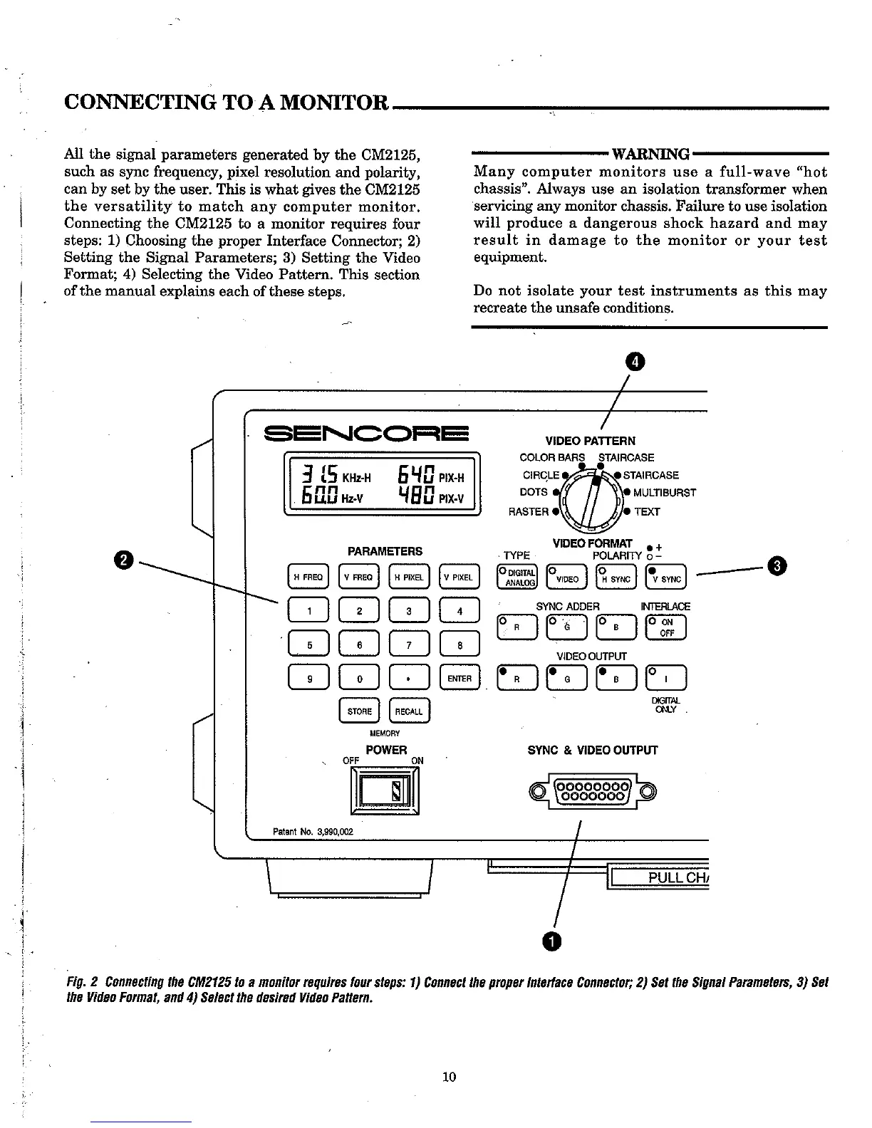 Sencore cm2125 - Connecting to a Monitor