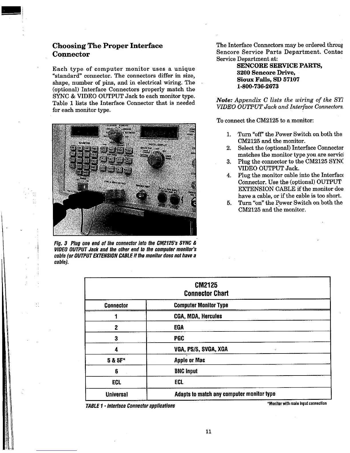 Sencore cm2125 - Choosing the Proper Interface Connector