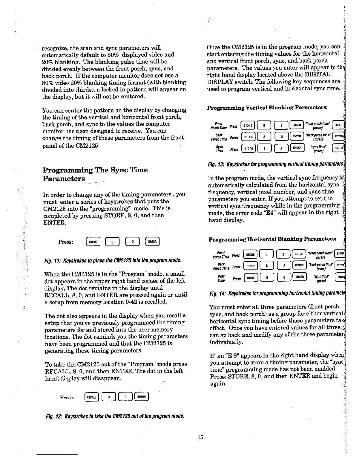 Sencore cm2125 - Programming the Sync Time Parameters; Programming Horizontal Blanking Parameters