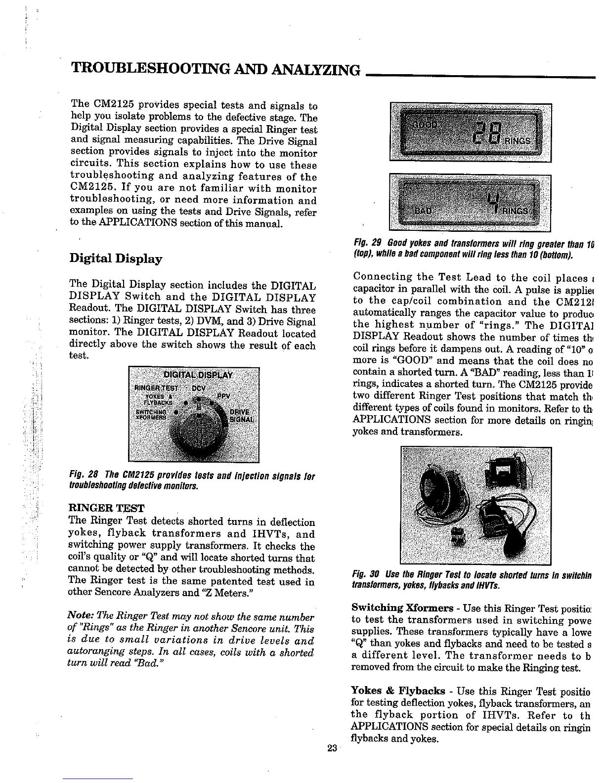 Sencore cm2125 - Troubleshooting and Analyzing; Digital Display; Ringer Test; Switching Xformers