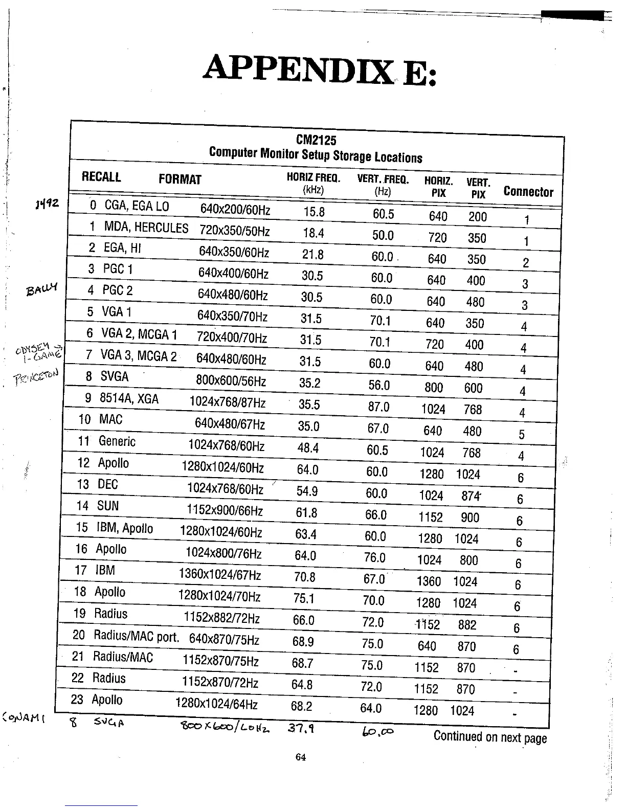 Sencore cm2125 - Computer Monitor Setup Storage Locations