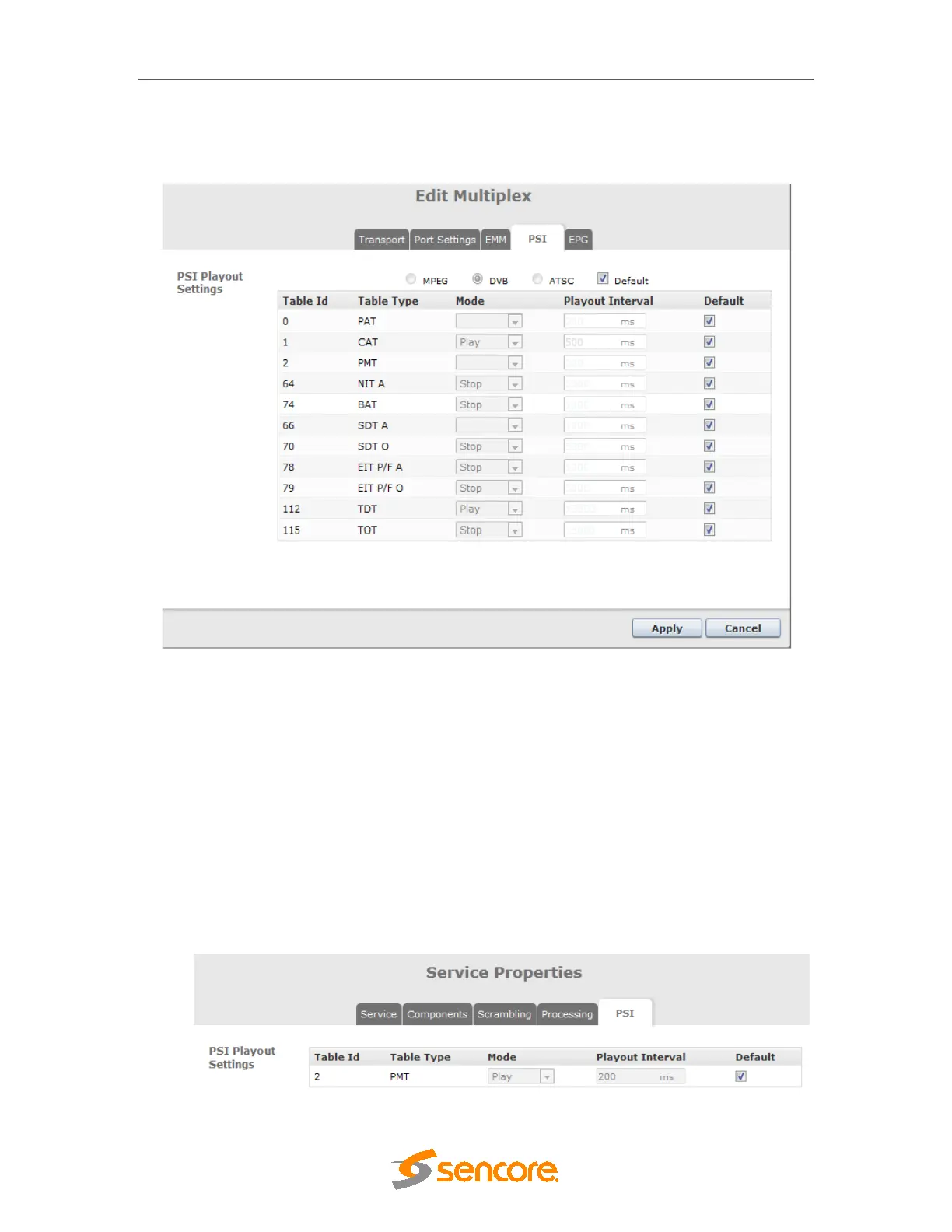 Individual services within an MPTS have a PSI tab that allows for the PMT’s Mode and Playout