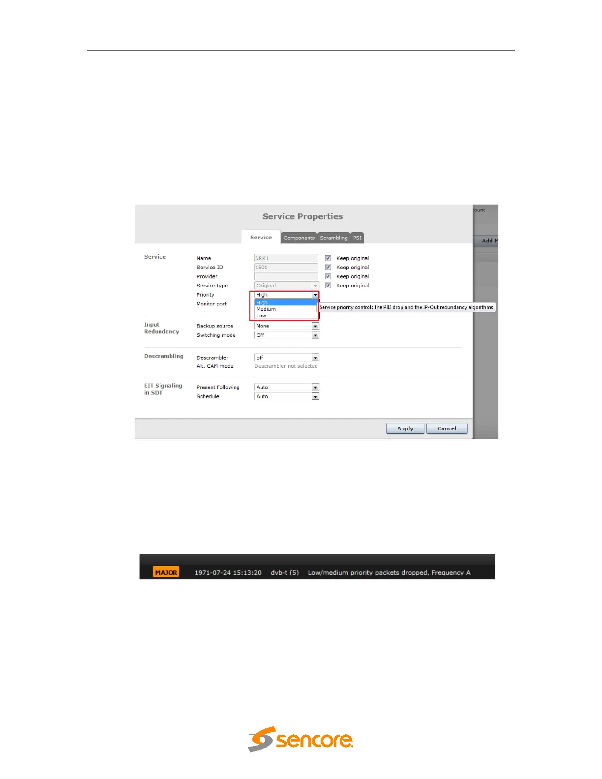 Figure 7.55– Service Priority Selection in service Properties.