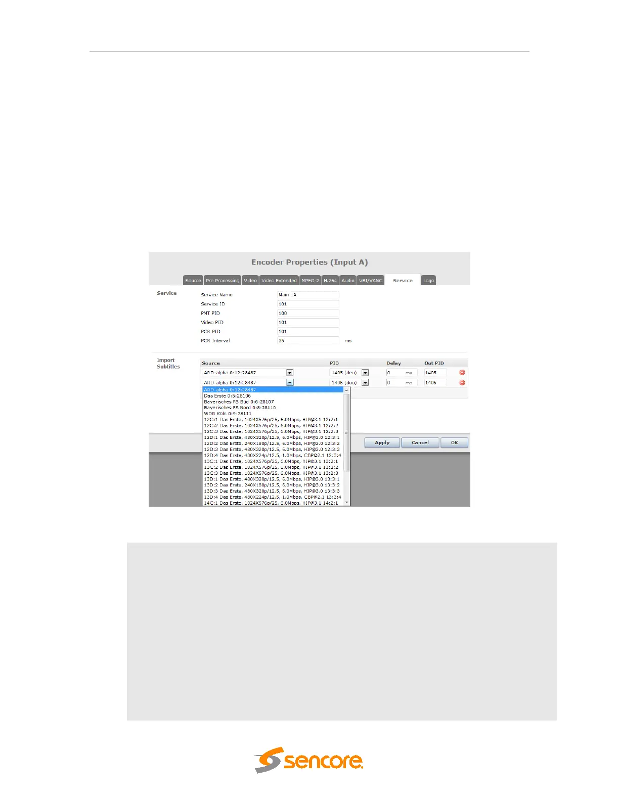 information when configuring the VBI/VANC. Teletext, subtitling pages, WSS and VPS status is