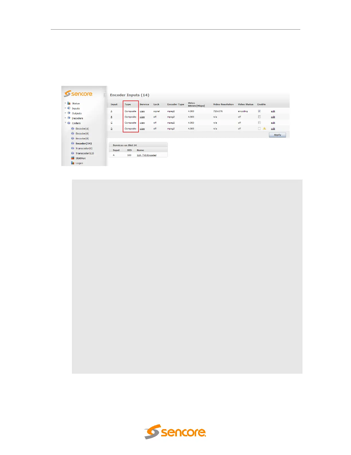 The Analog encoder status and configuration page is accessed by clicking on an encoder