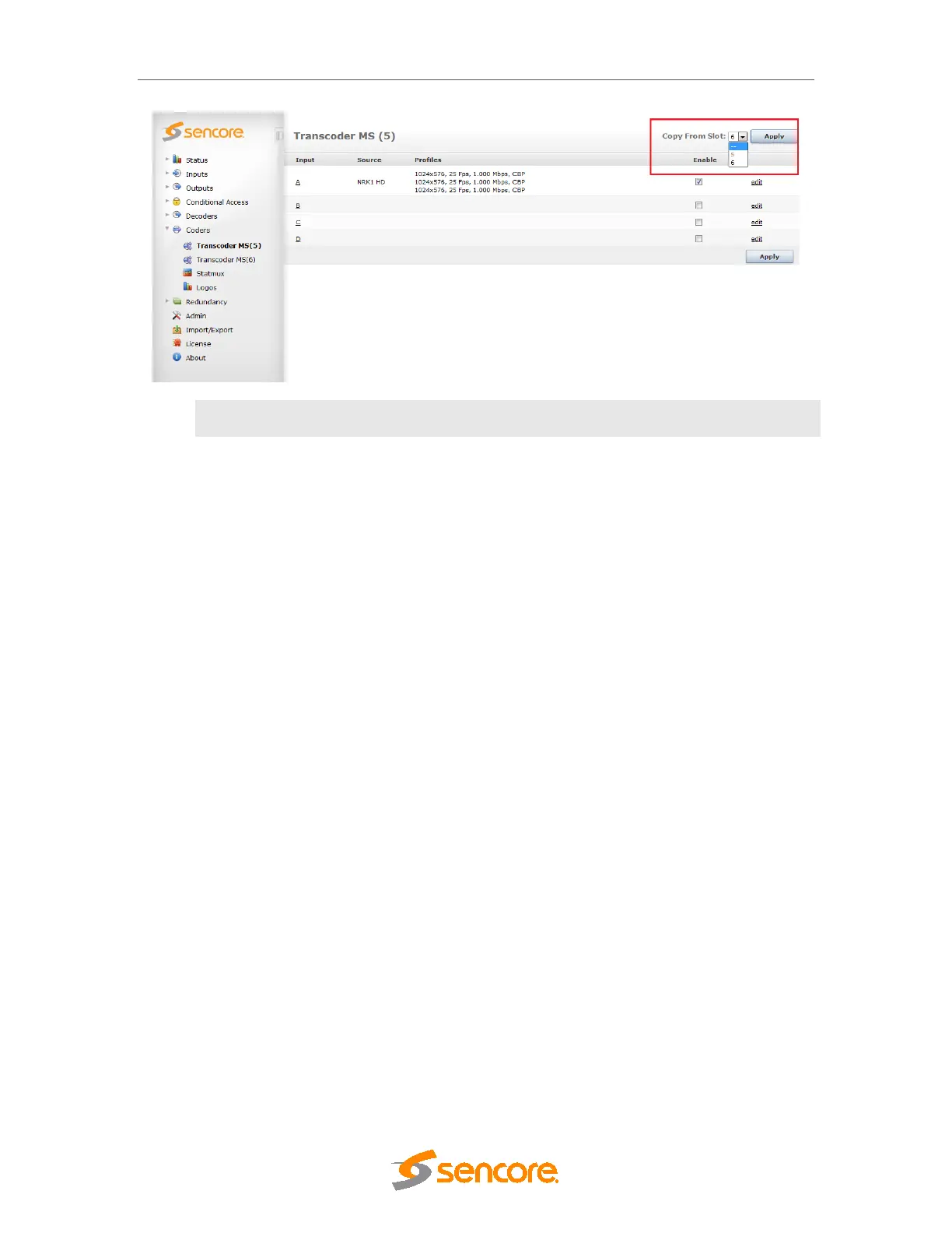 Once the source slot is selected and the ‘Apply’ button clicked, this will copy this configuration